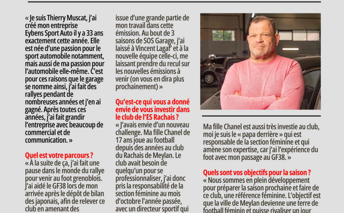 Après le succès de SOS Garage et la gestion d’Eybens Sport Auto, Thierry Muscat s’investit dans un projet de cœur : le développement du football féminin.