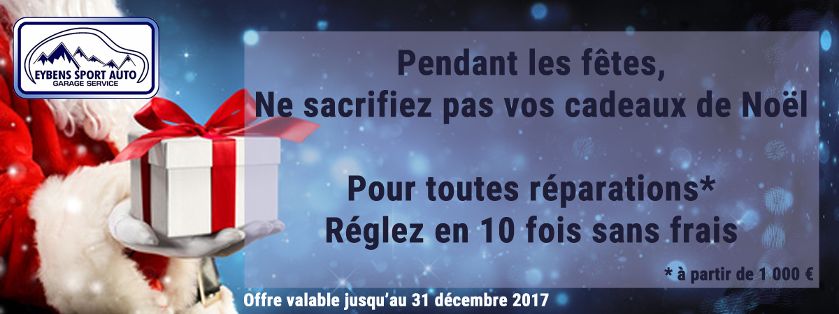 C’est pourquoi, votre garage Eybens Sport Auto, toujours soucieux de votre bonheur, vous offre de pouvoir régler en 10 fois sans frais, à partir de 1000€ de réparation. Offre valable jusqu’au 15 janvier 2018.