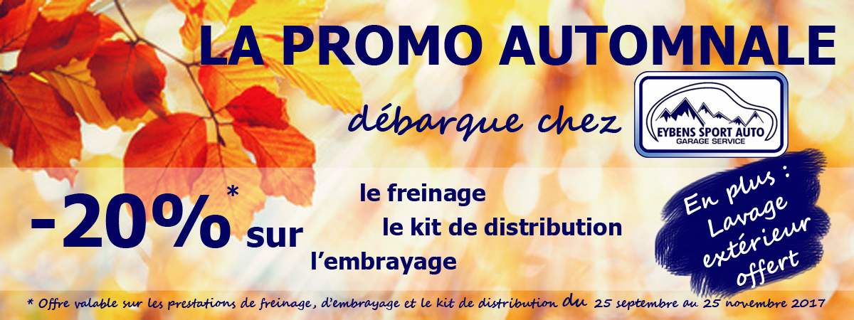 L’été est belle est bien fini et la rentrée bien entamée !!! Eybens Sport Auto reste à vos côtés et vous propose sa promotion d’automne ! Abordez sereinement ce changement de saison, avec un véhicule bien entretenu, à des tarifs intéressants !